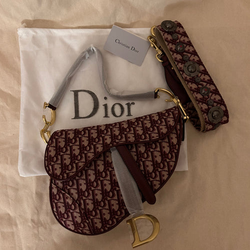 Red quilted leather bag with gold hardware